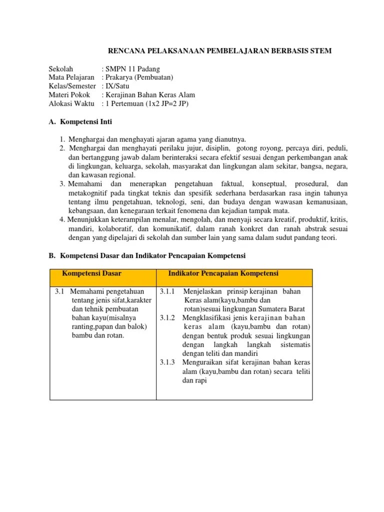 Ini adalah contoh rpp guru 1 lembar prakarya smp kelas 9 semester 2 sesuai surat edaran kemendikbud no 14 tanggal 10 desember tahun 2019 revisi 2020.